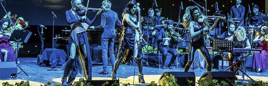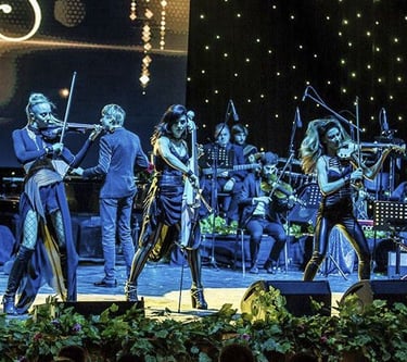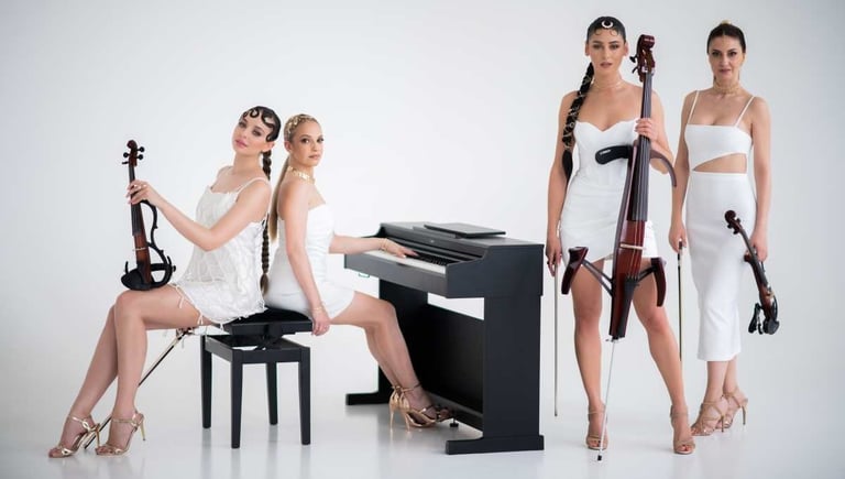 Our signature formula. Four outstanding artists deliver an electrifying instrumental show featuring two electric violins, cello, and piano. High energy, synchronized choreography, and a refined crossover repertoire spanning classical, pop, and rock create a powerful performance with strong visual and sonic impact.