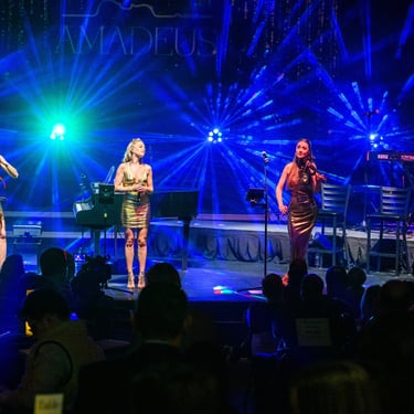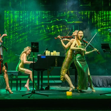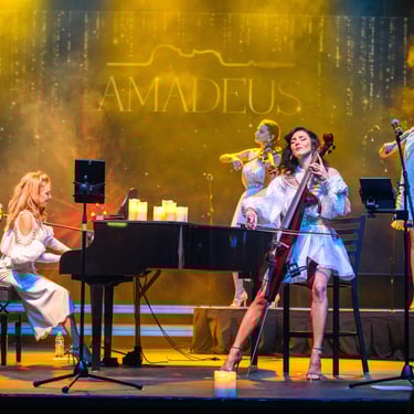 The signature Amadeus formula. Four outstanding artists deliver an electrifying instrumental show featuring two electric violins, cello, and piano, seamlessly blending music and movement into a powerful live experience.